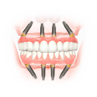Используются имплантаты Lenmiriot. Технология подразумевает под собой установку протеза с надёжным креплением на 4-х имплантатах.